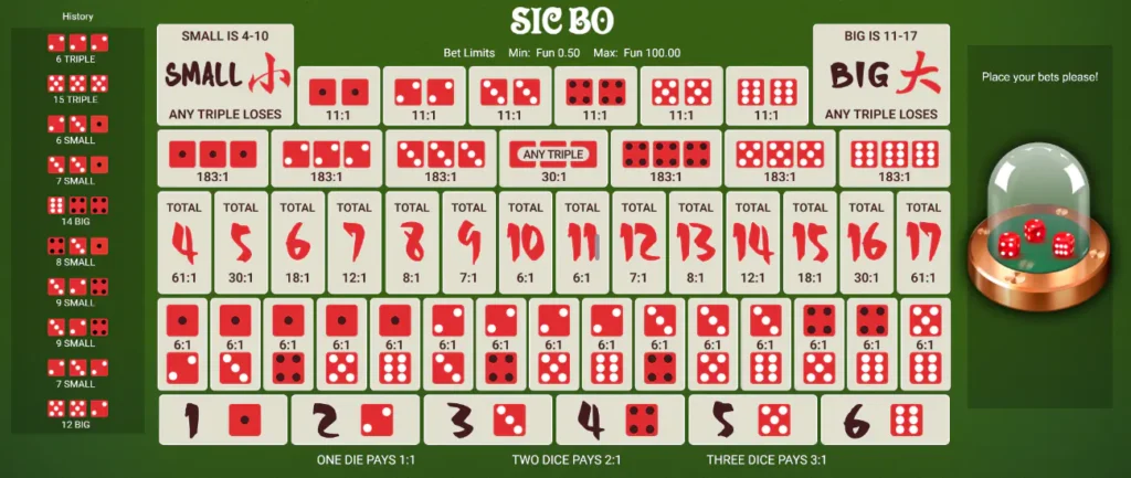 We want to be inclusive and provide our players with as wide a range of games as possible. So, it’s not all reels and roulette. Sic Bo is a three-dice game where players place a bet on the total or combination of the dice. You can bet on specific totals, combinations, big/small, or triples, before the dice are shaken and winning bets are immediately paid out based on the results.
